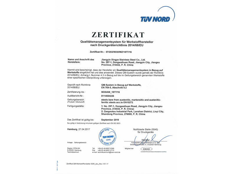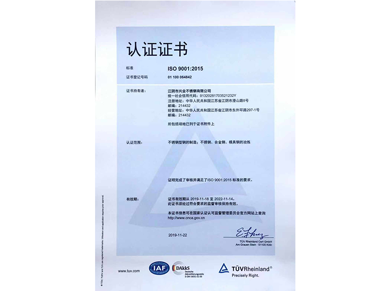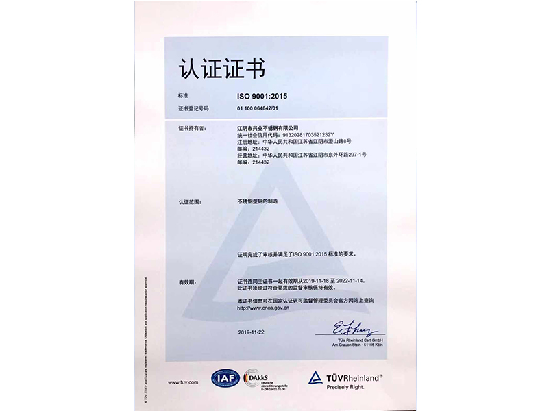 本公司按照ISO9001:2015質(zhì)量管理體系的標準要求,建立了質(zhì)量管理體系,并通過TUV認證